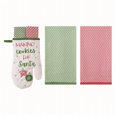 - Includes three essential kitchen textiles: one fabric oven mitt and two matching kitchen towels for a coordinated look.