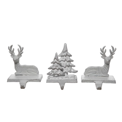 - Elevate your holiday decor with the Transpac Iron Reindeer Forest Stocking Holder Set of 3, crafted from durable metal, featuring a charming white finish and measuring 7.28″ in height, perfect for securely displaying your Christmas stockings.