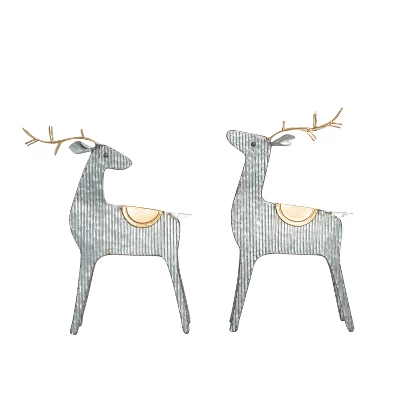 - Elevate your holiday decor with the Transpac Metal Corrugated Reindeer Decor Set, featuring two stylish silver reindeer figurines made from durable metal, perfect for indoor tabletop display during the Christmas season.