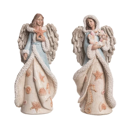 - Charming set of 2 resin seaside angel figurines perfect for adding a touch of coastal elegance to your home decor.