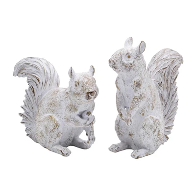 - Delightful Transpac Resin White Squirrel Set of 2 home decorations, perfect for spring gifting, featuring charming decorative sculptures that add a whimsical touch to any indoor tabletop.
