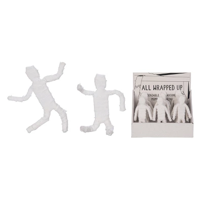 Introducing the Transpac Wire Wrapped Fabric Bendable Mummy Figurine, a delightful addition to your Halloween decor. This charming decorative object features a whimsical design that captures the spirit of the season. Crafted from high-quality fabric and canvas, this mummy figurine is not only visually appealing but also bendable, allowing you to pose it in various fun positions. Its white color adds a touch of spookiness while remaining versatile for indoor use. Perfect for tabletops, this figurine makes an excellent gift for Halloween enthusiasts or a unique hostess gift for your next gathering. Easy to care for, simply spot or wipe clean to maintain its charm. Bring a playful touch to your home this Halloween with this enchanting mummy figurine.